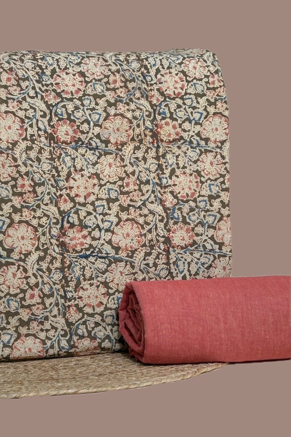 2.5mtr Each – Natural Dye Kalamkaari HandBlock Printed Top and Handloom Soft Cotton Bottom Fabric Set