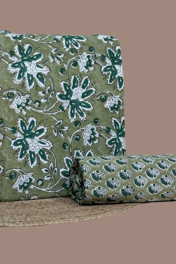 Green – 2pc Pure Soft Cotton Blockprinted Top and Bottom Fabric Set