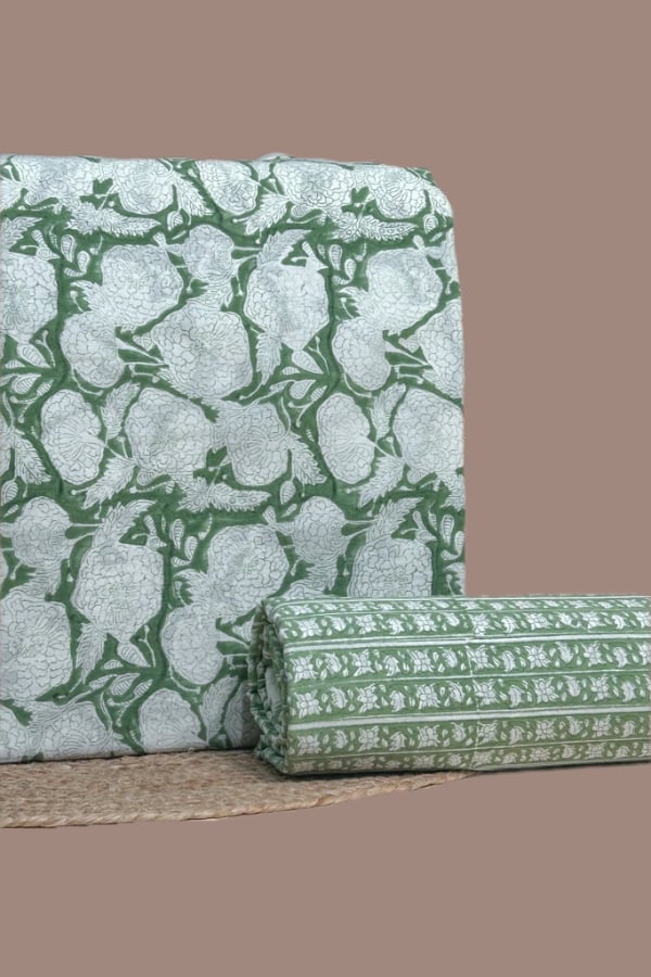 Green – 2pc Pure Soft Cotton Blockprinted Top and Bottom Fabric Set