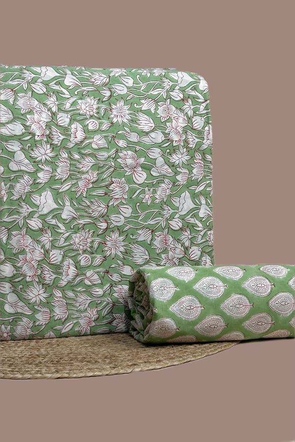 Green – 2pc Pure Soft Cotton Blockprinted Top and Bottom Fabric Set