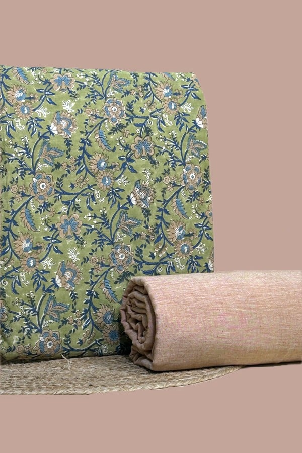 2pc Pure Soft Cotton Blockprinted Top and Bottom Fabric Set
