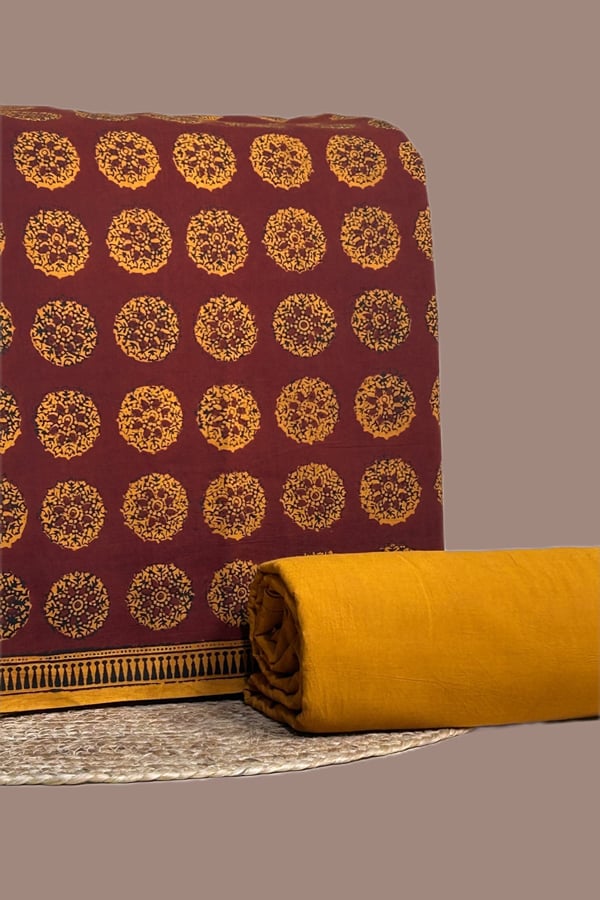 Maroon – 2pc Bagh Handblock Top and Plain Dyed Bottom Cotton Fabric Set