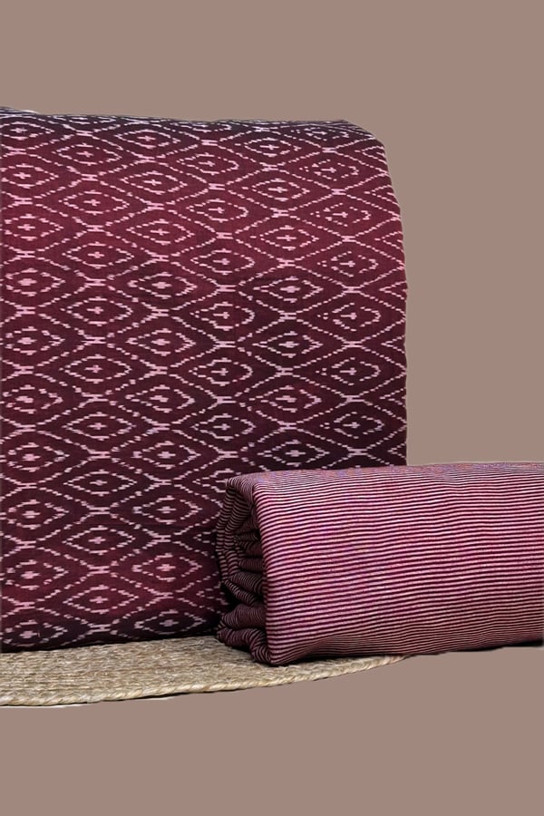 Maroon – 2pc HandCrafted Ikkat Top and Handloom Woven Stripes Bottom Fabric Set