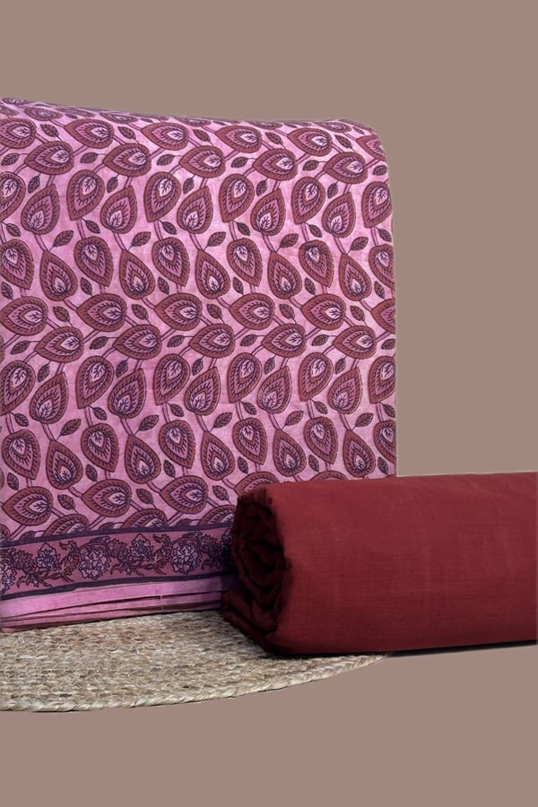 2pc Pure Soft Cotton Blockprinted Top and Bottom Fabric Set