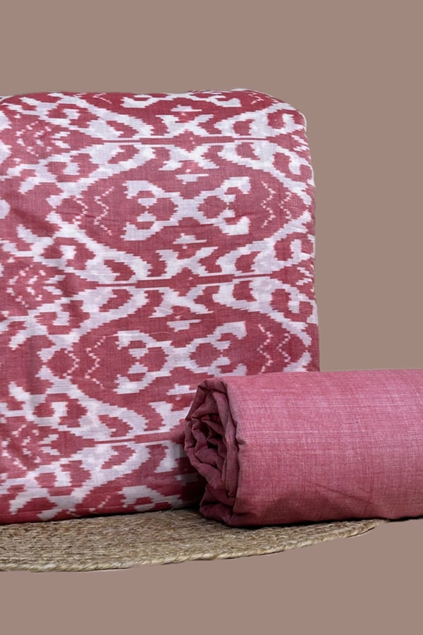 Pink – 2pc HandCrafted Ikkat Top and Mangalgiri Cotton Bottom Fabric Set