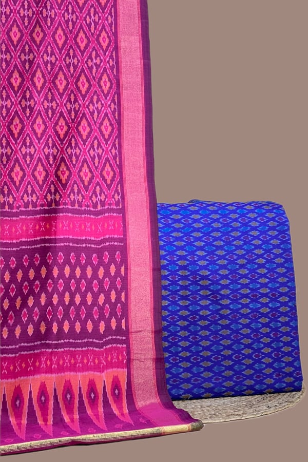 Blue - 2pc Premium Silk-Cotton Ikkat Dupatta and Soft Ikkat Cotton Silk Top Fabric Set