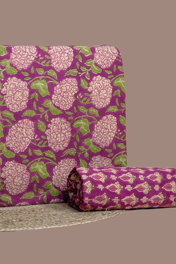 2pc Pure Soft Cotton Blockprinted Top and Bottom Fabric Set