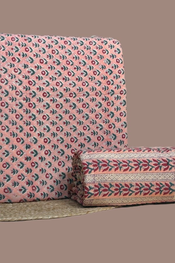 Pink – 2pc Pure Soft Cotton Blockprinted Top and Bottom Fabric Set