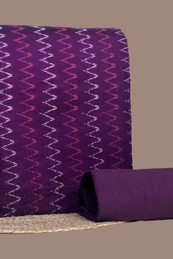 Purple – 2pc HandCrafted Ikkat Top and Handloom Soft Cotton Bottom Fabric Set
