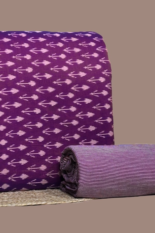 Purple – 2pc HandCrafted Ikkat Top and Handloom Woven Stripes Bottom Fabric Set