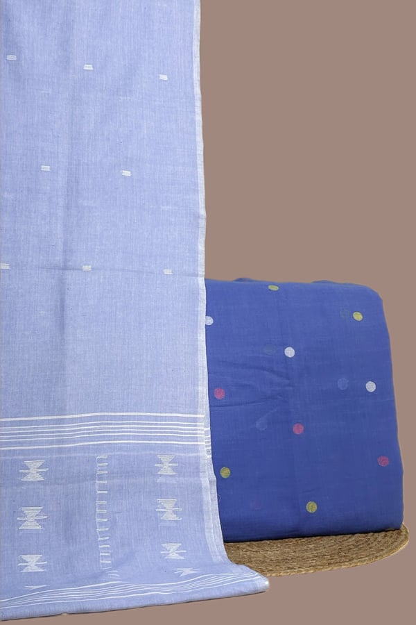 Blue - 2pc Handloom Cotton Dupatta and Handloom Woven Design Top Fabric Set