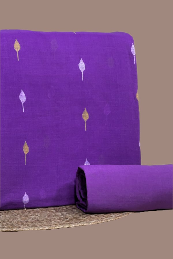 Purple – 2pc Handloom Woven Design Cotton Top and Handloom Soft Cotton Bottom Fabric Set