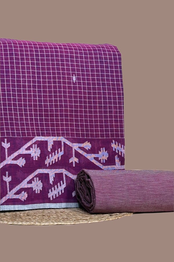 Purple – 2pc Jamdani Intricate Woven Cotton Top and Handloom Stripes Bottom Fabric Set