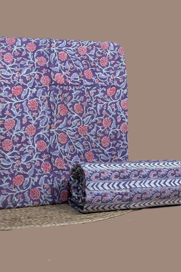 Purple – 2pc Pure Soft Cotton Blockprinted Top and Bottom Fabric Set