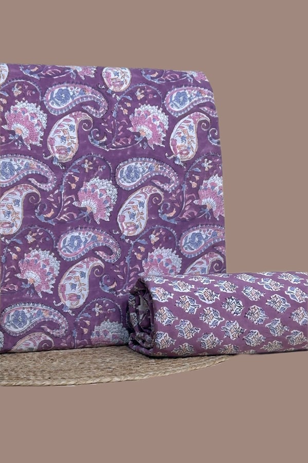 Purple – 2pc Pure Soft Cotton Blockprinted Top and Bottom Fabric Set