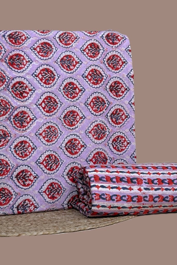 Purple – 2pc Pure Soft Cotton Blockprinted Top and Bottom Fabric Set