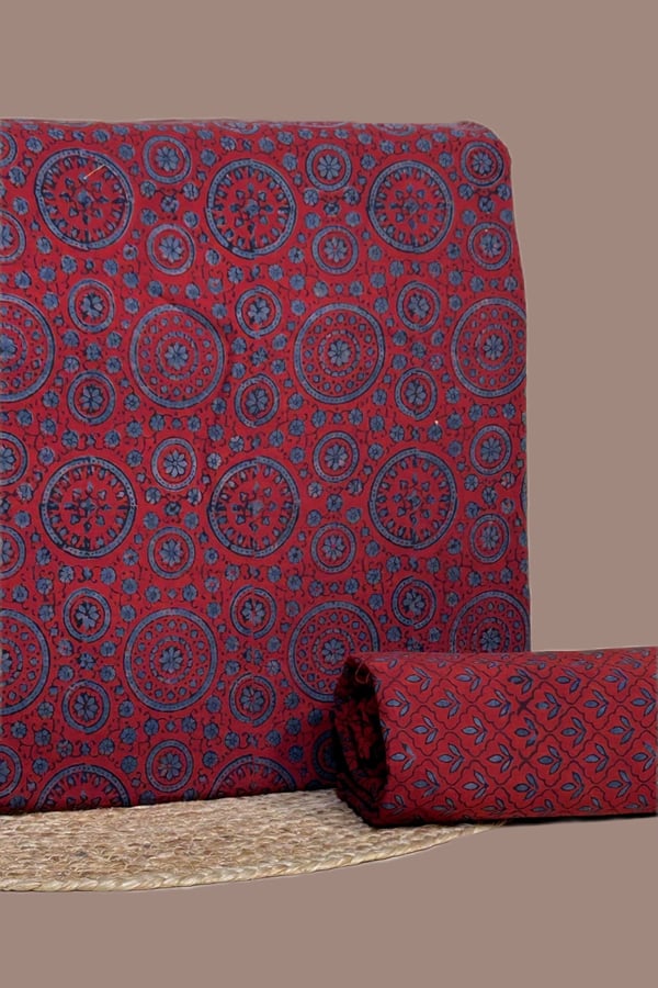 Red – 2pc Ajrakh HandCrafted Cotton Top and Bottom Cotton Fabric Set