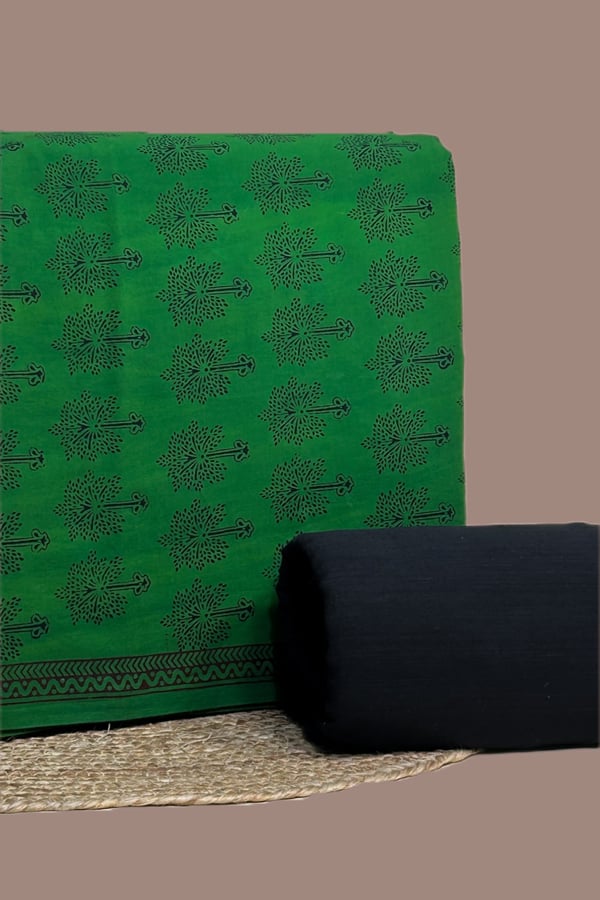 Green - 2pc Bagh Handblock Top and Handloom Bottom Cotton Fabric Set