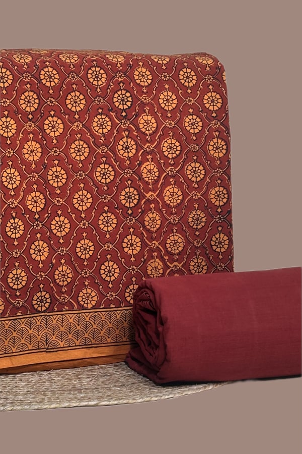 This Fabric is handloom woven and / or hand printed using vegetable dyes. There might be slight irregularities in the motif & colour shade which is a result of human involvement & is a hallmark of fabrics made by hand. Since the fabric is dyed using natural, vegetable dyes, it may rub dry or bleed colour on coming in contact with water for the first time.