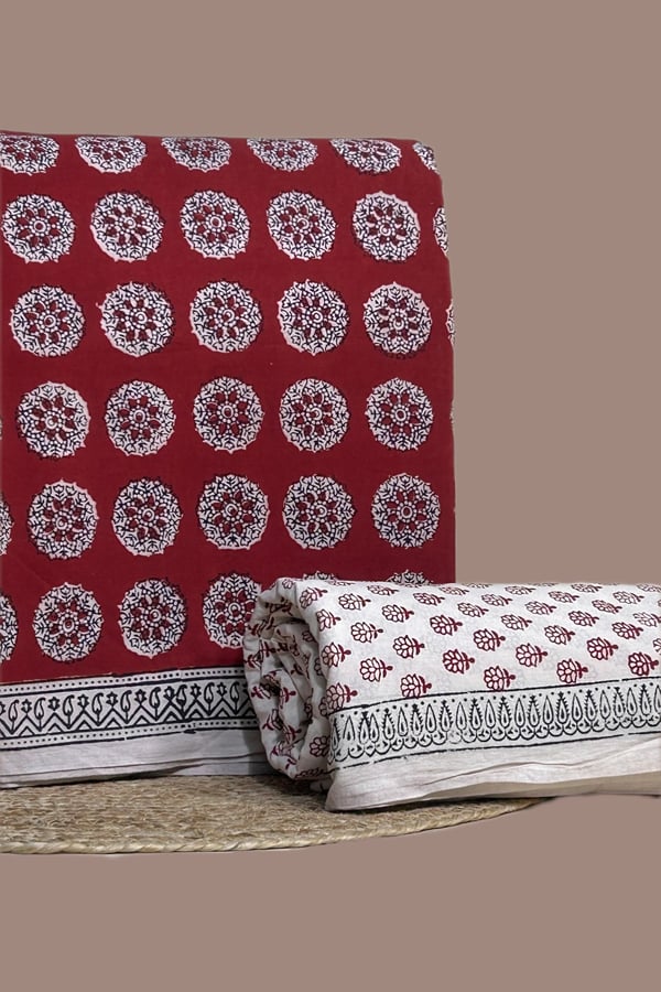 2pc Pure Soft Cotton Blockprinted Top and Bottom Fabric Set