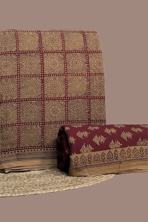 This Fabric is handloom woven and / or hand printed using vegetable dyes. There might be slight irregularities in the motif & colour shade which is a result of human involvement & is a hallmark of fabrics made by hand. Since the fabric is dyed using natural, vegetable dyes, it may rub dry or bleed colour on coming in contact with water for the first time.