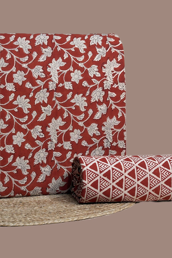 Red – 2pc Bagru Blockprint Top and Bottom Cotton Fabric Set