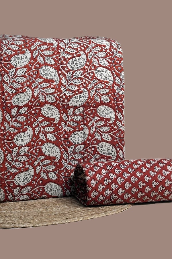 Red – 2pc Bagru Blockprint Top and Bottom Cotton Fabric Set