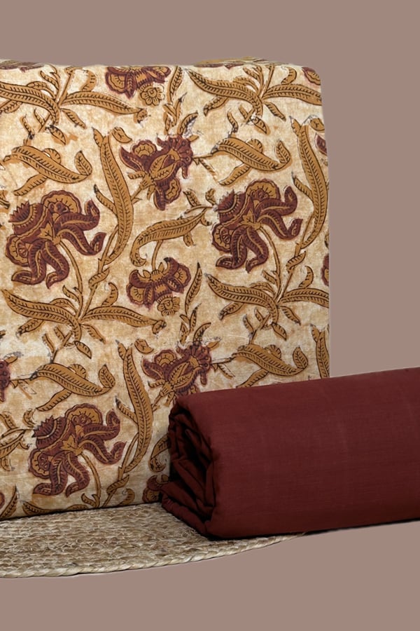 This Fabric is handloom woven and / or hand printed using vegetable dyes. There might be slight irregularities in the motif & colour shade which is a result of human involvement & is a hallmark of fabrics made by hand. Since the fabric is dyed using natural, vegetable dyes, it may rub dry or bleed colour on coming in contact with water for the first time.