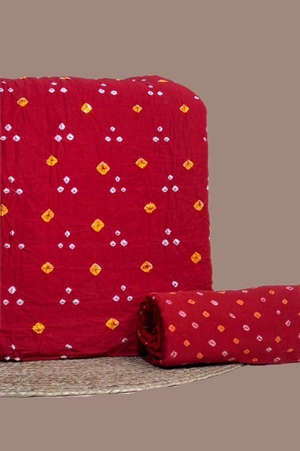 Red – 2pc Hand Tie-Dye Bandhani Pure Cotton Top and Bottom Fabric Set