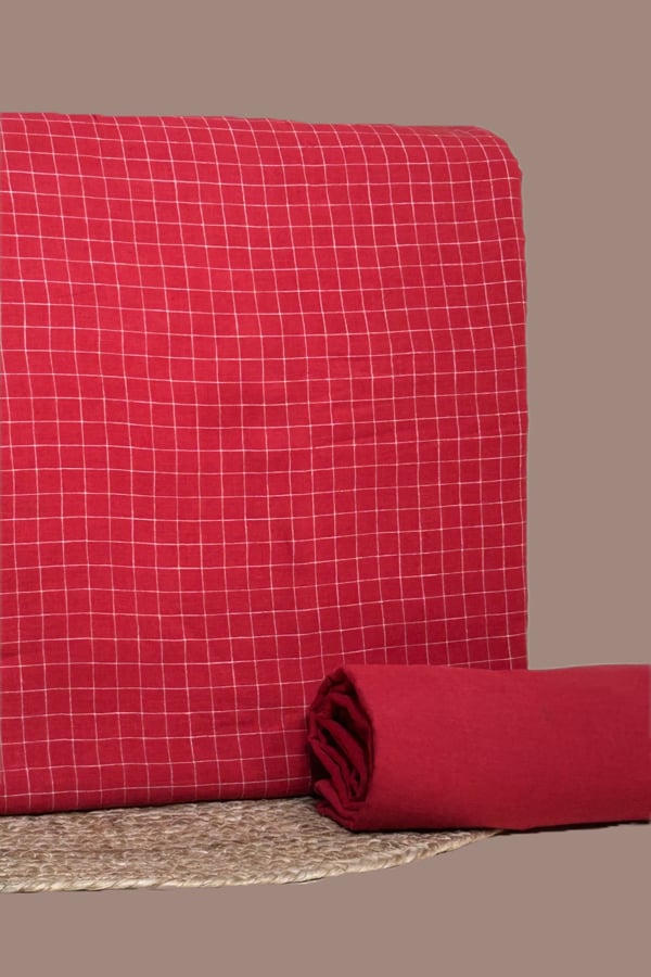 Red – 2pc Handloom Checkered Cotton Top and Handloom Bottom Fabric Set