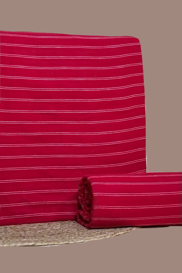Red – 2pc Handloom Stripes Cotton Top and Handloom Bottom Fabric Set