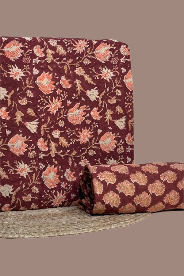 2pc Pure Soft Cotton Blockprinted Top and Bottom Fabric Set