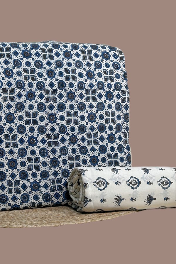 White – 2pc Ajrakh HandCrafted Cotton Top and Bottom Cotton Fabric Set