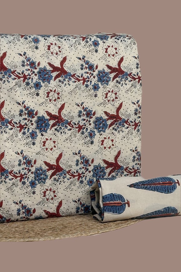 2pc Pure Soft Cotton Blockprinted Top and Bottom Fabric Set