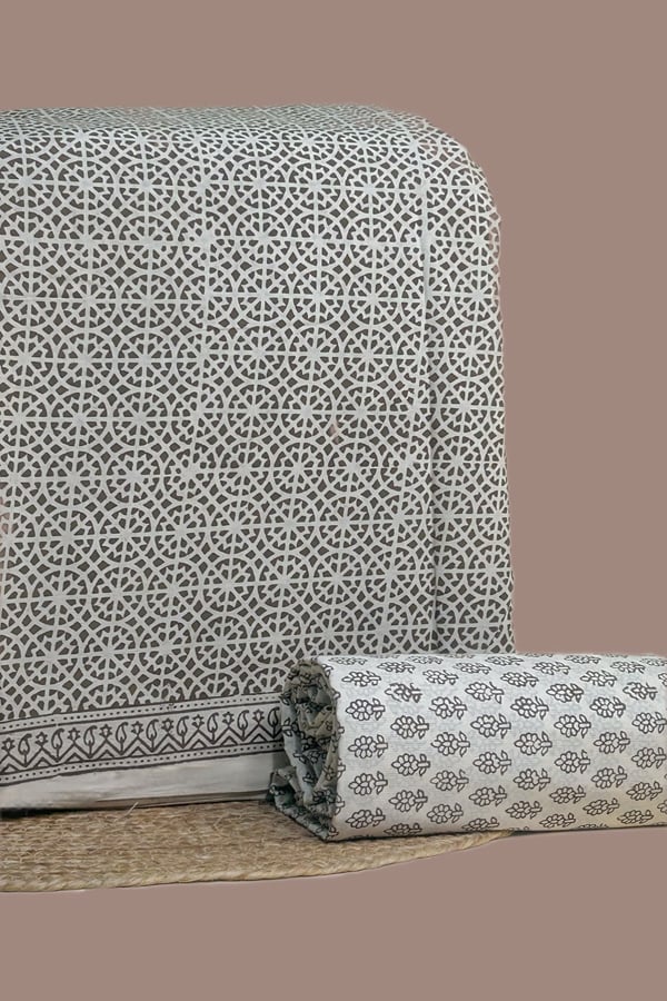 2pc Handloom Woven Design Cotton Top and Blockprint Cotton Bottom Fabric Set