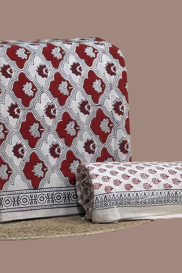 2pc Ajrakh HandCrafted Cotton Dupatta and Top Cotton Fabric Set