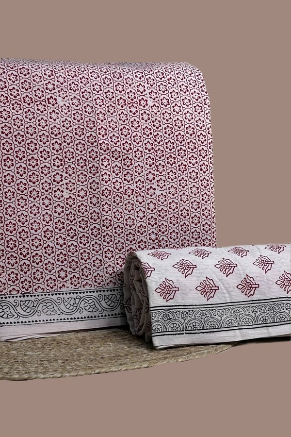 Madder Red Handblock Bagh Printed Cotton Fabric