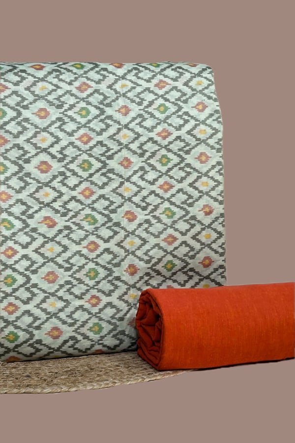 2.5mtr Each – Hand Tie–Dye CotonSilk Soft Ikkat Top with Handloom Bottom Pure Cotton Fabric Set