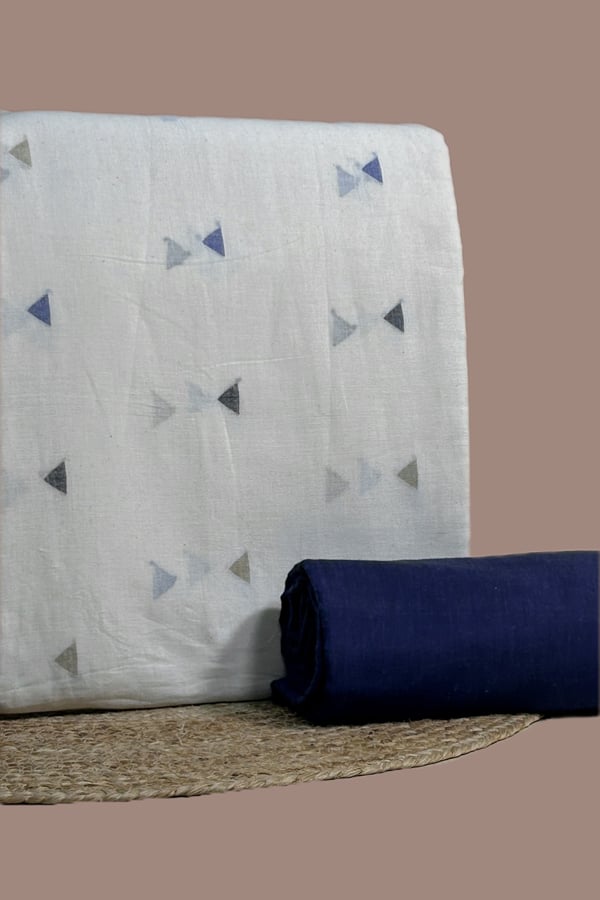 2.5mtr Each – Flowy Handloom Woven Design Cotton Top and Handloom Soft Cotton Bottom Fabric Set