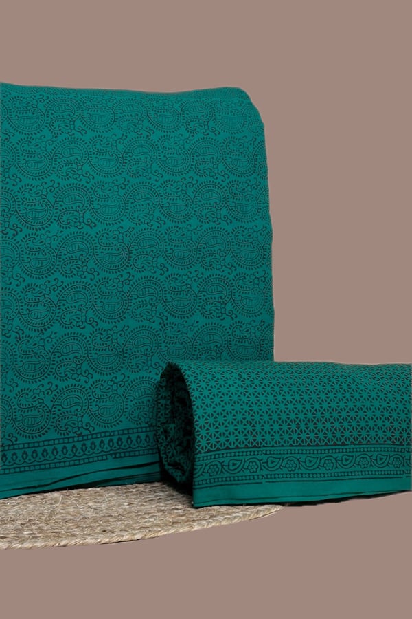 Green - 2pc Bagh HandCrafted Top and Bottom Cotton Fabric Set