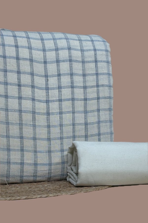 2.5mtr Each – Kala Cotton Checkered Top Fabric with Handloom Cotton Bottom Fabric Set