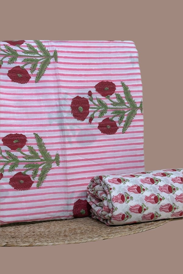 2.5mtr Each – HandBlock Printed Pure Soft Cotton Top Bottom Fabric Set