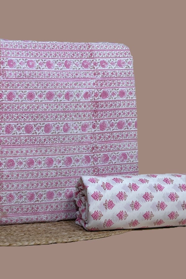 2.5mtr Each – HandBlock Printed Pure Soft Cotton Top Bottom Fabric Set