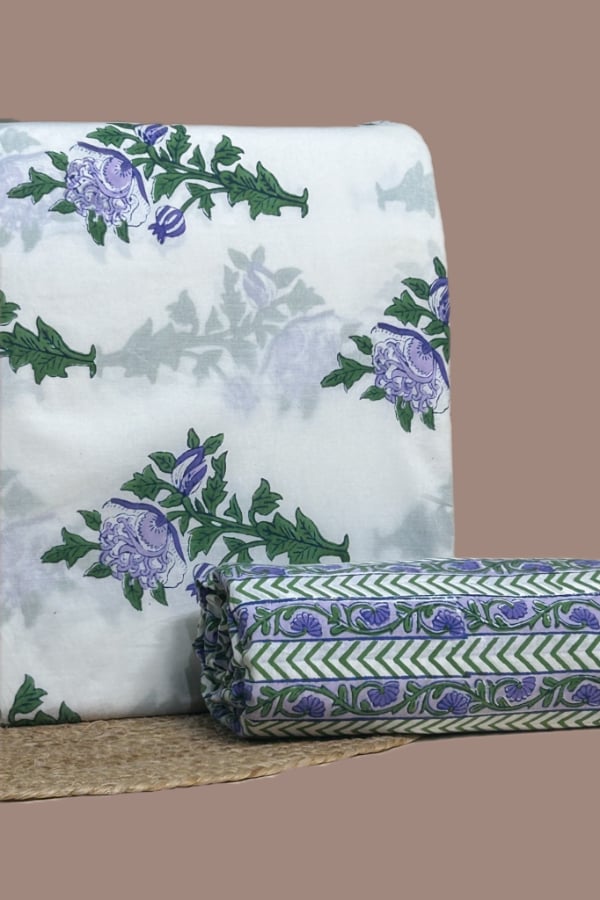 2pc Pure Soft Cotton Blockprinted Top and Bottom Fabric Set