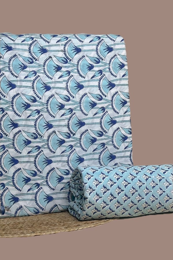 2pc Pure Soft Cotton Blockprinted Top and Bottom Fabric Set