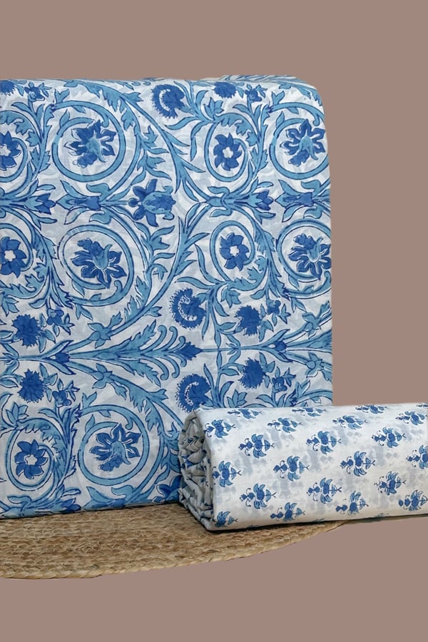 2pc Pure Soft Cotton Blockprinted Top and Bottom Fabric Set
