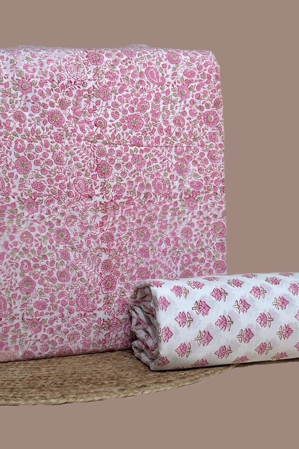 2pc Pure Soft Cotton Blockprinted Top and Bottom Fabric Set