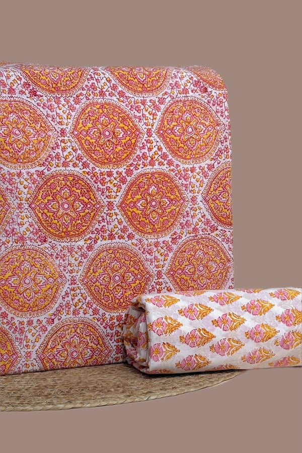 2pc Pure Soft Cotton Blockprinted Top and Bottom Fabric Set