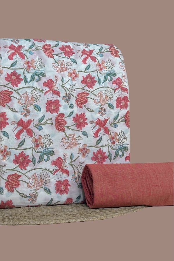 2.5mtr Each – HandBlock Printed Pure Soft Cotton Top With Handloom Cotton Bottom Fabric Set
