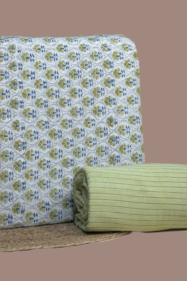2pc Pure Soft Cotton Blockprinted Top and Bottom Fabric Set